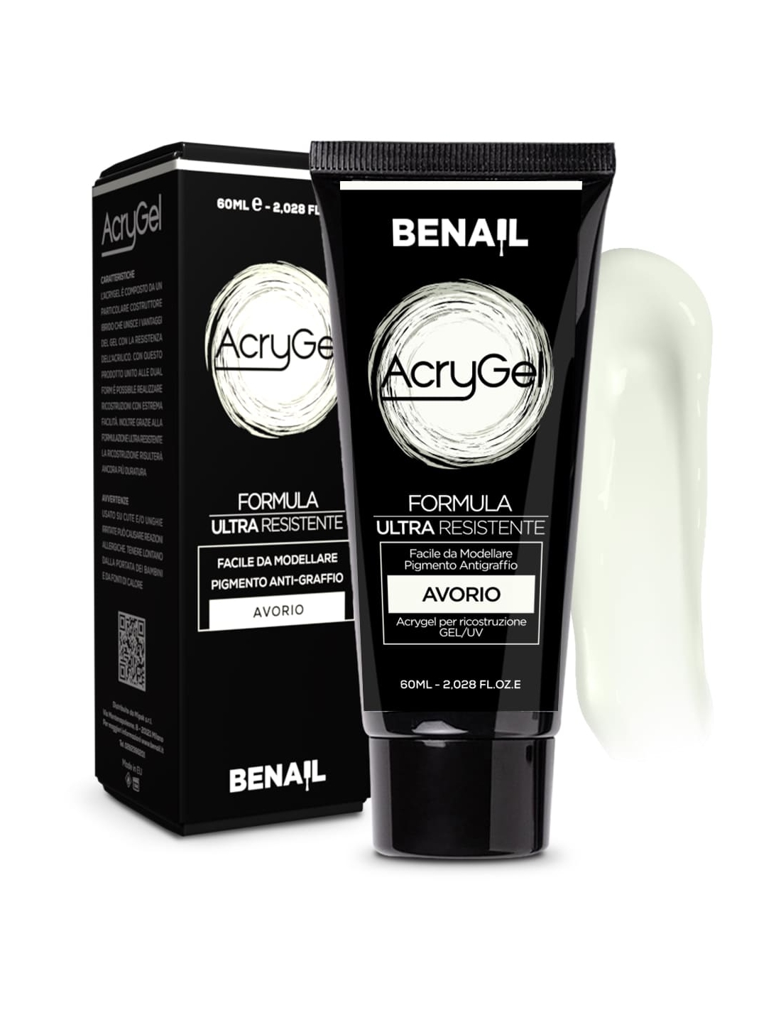 L'AcryGel - Avorio è composto da un particolare costruttore ibrido che unisce i vantaggi del Gel con la Resistenza dell'Acrilico. Con questo prodotto unito alle Dual Tip è possibile realizzare Ricostruzioni con estrema facilità. Inoltre grazie alla formulazione Ultra Resistente, la ricostruzione risulterà ancora più duratura. La sua colorazione risulta essere coprente, indicato per Frech e Baby Boomer.