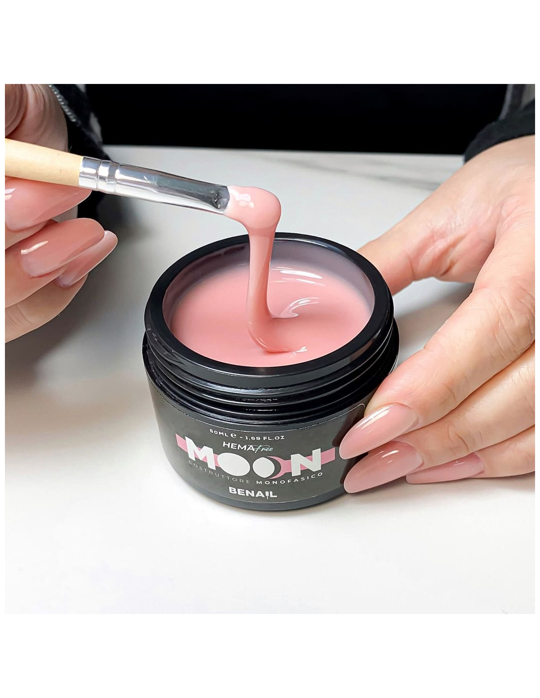 Il Moon Nude è un gel costruttore monofasico a media densità, ideale per: ricostruzioni, coperture, refill, semipermanente rinforzato e Baby Boomer. Estremamente performante anche su unghie fragili o sottili, offre una struttura stabile, la sua formula autolivellante garantisce una stesura uniforme e precisa, riducendo i tempi di limatura e semplificando il lavoro. Non è indicato nei mesi estivi o in ambienti particolarmente caldi, in quanto il calore può renderlo troppo fluido e meno gestibile. In tali condizioni, si consiglia l’uso di gel costruttori tissotropici, più stabili anche ad alte temperature.