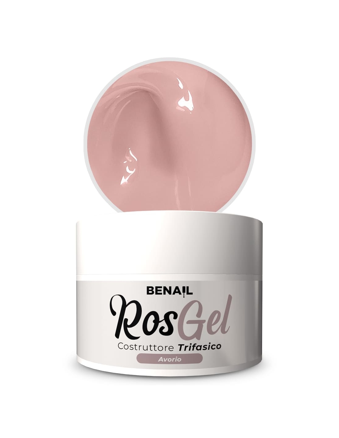 Il Gel Costruttore Trifasico RosGel Avorio è un gel professionale autolivellante HemaFree a media densità, pensato per lavori di Ricostruzione, Copertura, Refill, Semipermanente Rinforzato e Baby Boomer. La sua formulazione con attivatori di aderenza e resina strutturale garantisce un'ottima performance tecnica e una durata elevata. Arricchito con Blue Reflex anti-giallo, evita ingiallimenti e alterazioni cromatiche, mantenendo inalterata la brillantezza dei colori applicati.