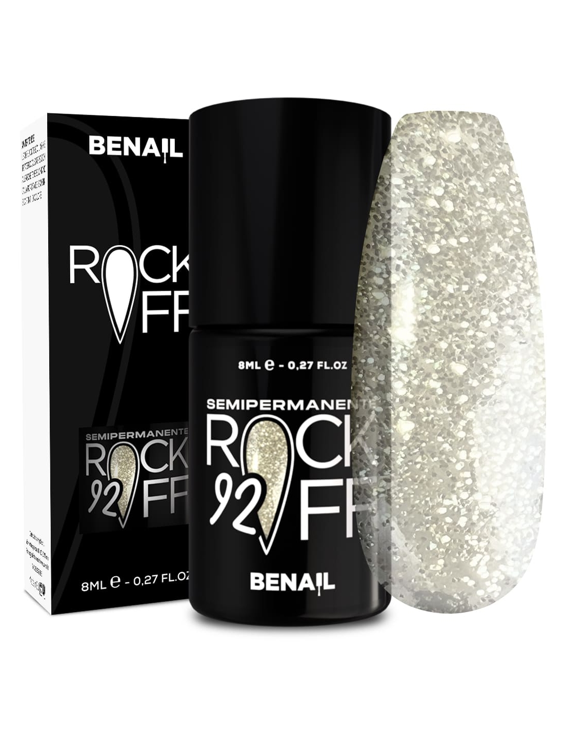 Rockoff è uno smalto semipermanente ad alta pigmentazione, studiato e realizzato con una particolare formulazione ad oligomero composto che ne facilita l'applicazione ed evita la formazione di striature. Il prodotto è autolivellante, elastico e presenta colori estremamente intensi e brillanti, con una facile stesura garantita dal pennellino a setole larghe in dotazione. Per un ottima efficacia del semipermanente si consiglia di utilizzare il Finish Extreme Color Match per colori fluo e pastello, che contiene Sun Blocker utile per la protezione dai raggi solari; per i colori bianchi si raccomanda il Finish Puro White.