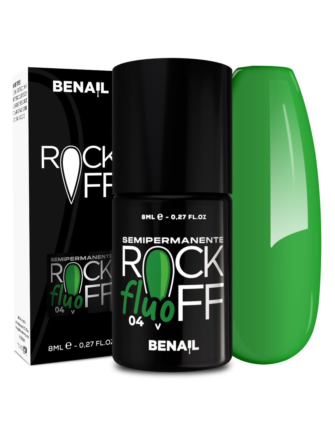 Rockoff è uno smalto semipermanente ad alta pigmentazione, studiato e realizzato con una particolare formulazione ad oligomero composto che ne facilita l'applicazione ed evita la formazione di striature. Il prodotto è autolivellante, elastico e presenta colori estremamente intensi e brillanti, con una facile stesura garantita dal pennellino a setole larghe in dotazione. Per un ottima efficacia del semipermanente si consiglia di utilizzare il Finish Extreme Color Match per colori fluo e pastello, che contiene Sun Blocker utile per la protezione dai raggi solari; per i colori bianchi si raccomanda il Finish Puro White.