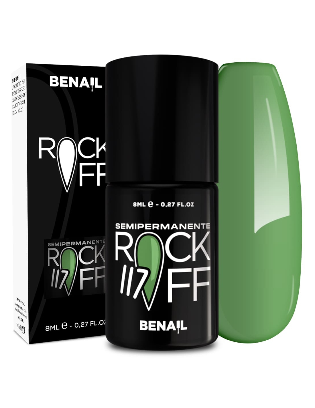 Rockoff è uno smalto semipermanente ad alta pigmentazione, studiato e realizzato con una particolare formulazione ad oligomero composto che ne facilita l'applicazione ed evita la formazione di striature. Il prodotto è autolivellante, elastico e presenta colori estremamente intensi e brillanti, con una facile stesura garantita dal pennellino a setole larghe in dotazione. Per un ottima efficacia del semipermanente si consiglia di utilizzare il Finish Extreme Color Match per colori fluo e pastello, che contiene Sun Blocker utile per la protezione dai raggi solari; per i colori bianchi si raccomanda il Finish Puro White.
