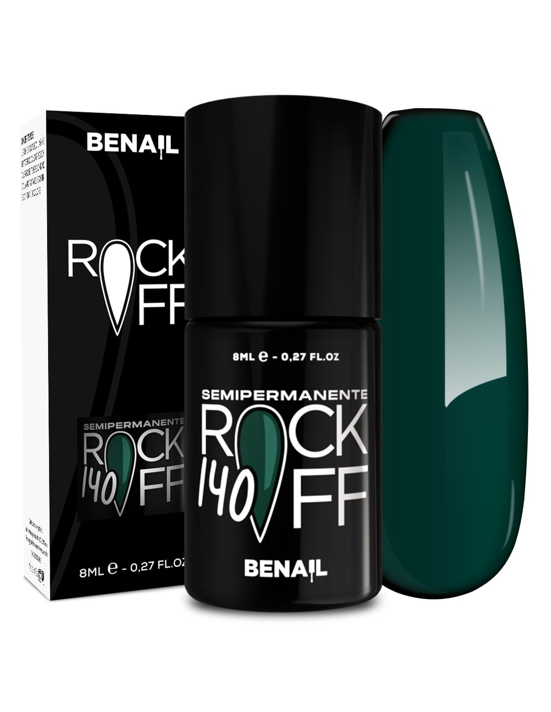 Rockoff è uno smalto semipermanente ad alta pigmentazione, studiato e realizzato con una particolare formulazione ad oligomero composto che ne facilita l'applicazione ed evita la formazione di striature. Il prodotto è autolivellante, elastico e presenta colori estremamente intensi e brillanti, con una facile stesura garantita dal pennellino a setole larghe in dotazione. Per un ottima efficacia del semipermanente si consiglia di utilizzare il Finish Extreme Color Match per colori fluo e pastello, che contiene Sun Blocker utile per la protezione dai raggi solari; per i colori bianchi si raccomanda il Finish Puro White.