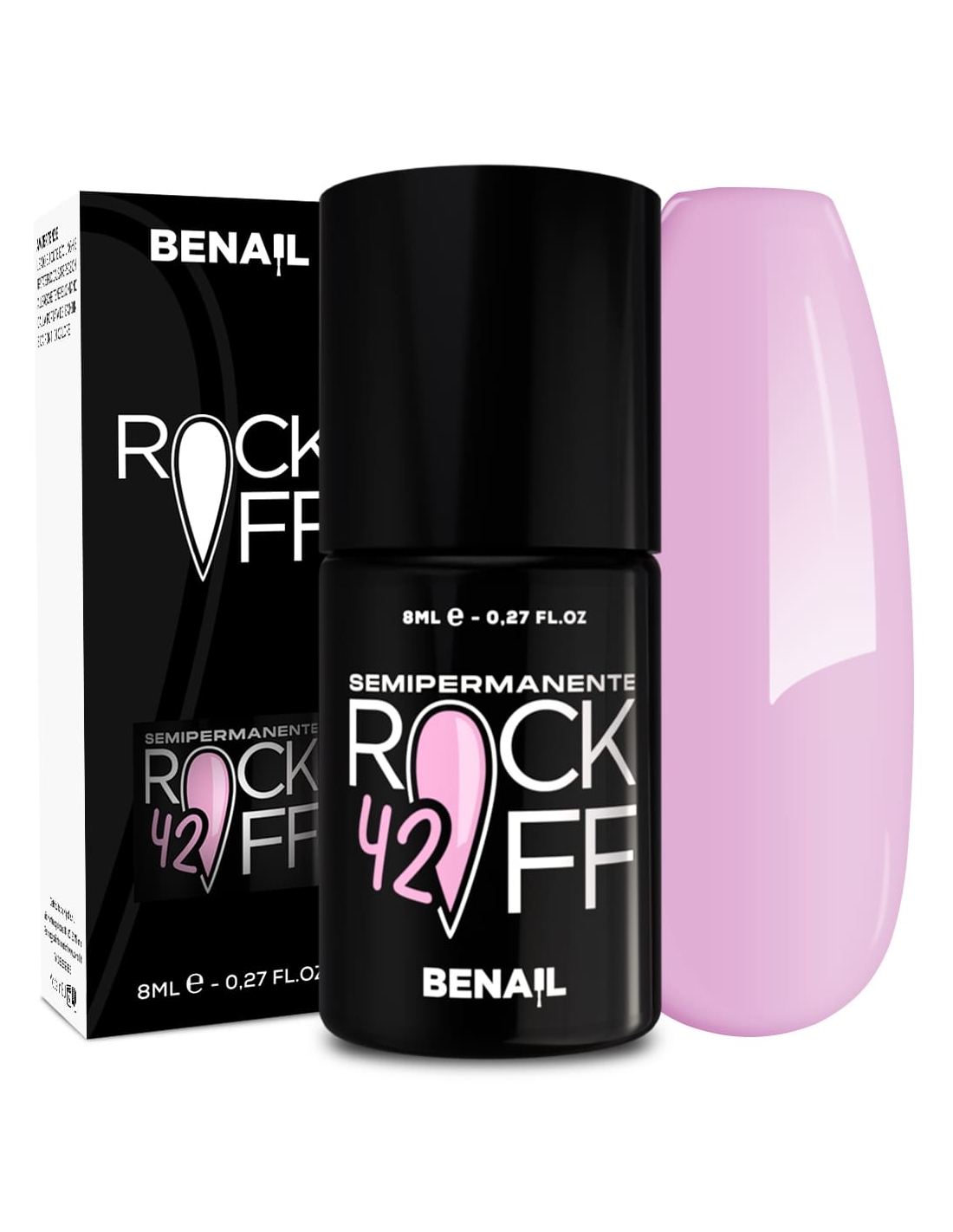 Rockoff è uno smalto semipermanente ad alta pigmentazione, studiato e realizzato con una particolare formulazione ad oligomero composto che ne facilita l'applicazione ed evita la formazione di striature. Il prodotto è autolivellante, elastico e presenta colori estremamente intensi e brillanti, con una facile stesura garantita dal pennellino a setole larghe in dotazione. Per un ottima efficacia del semipermanente si consiglia di utilizzare il Finish Extreme Color Match per colori fluo e pastello, che contiene Sun Blocker utile per la protezione dai raggi solari; per i colori bianchi si raccomanda il Finish Puro White.
