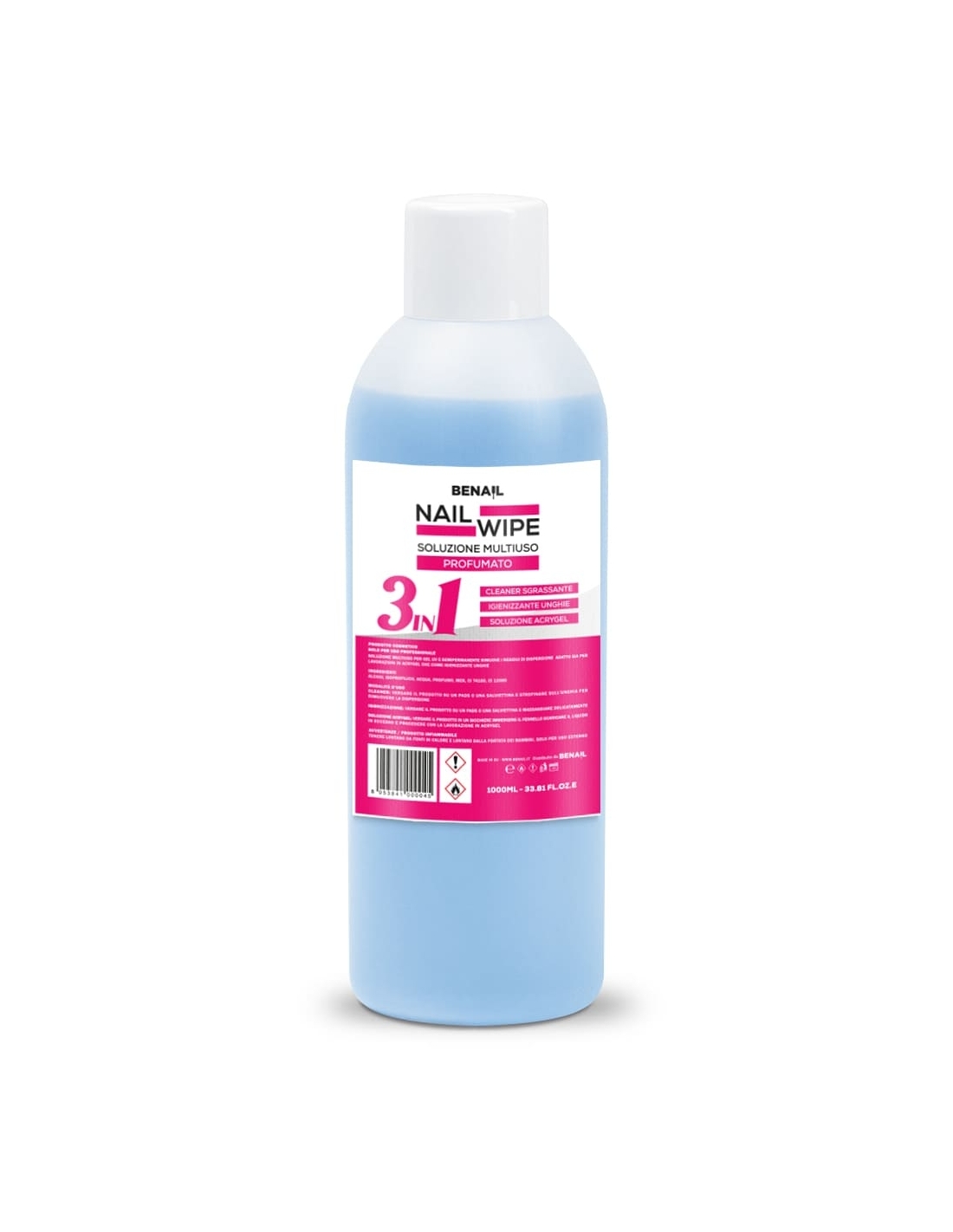 Nail Wipe 1000ml è un liquido 3 in 1 fondamentale per diverse fasi della procedura della preparazione delle unghie e dell'applicazione di smalto semipermanente e ricostruzione.
