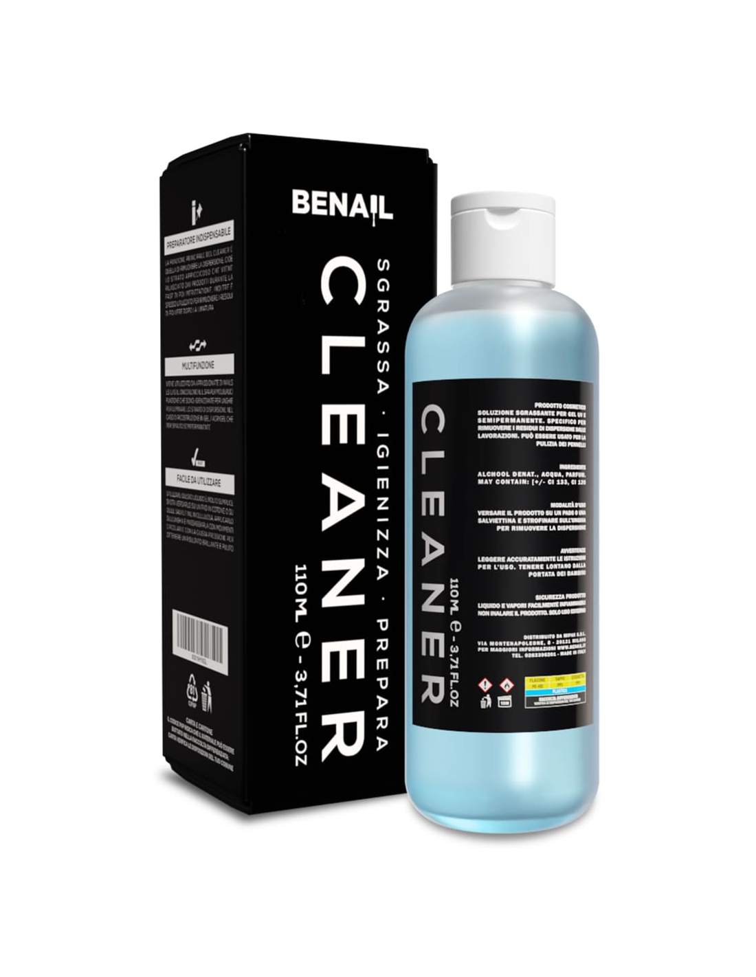 Cleaner Sgrassante Unghie 100ml è fondamentale per diverse fasi della procedura della preparazione delle unghie e dell'applicazione di smalto semipermanente e ricostruzione. Il prodotto è confezionato in un resistente flacone di plastica Pet progettato per proteggere il liquido dai danni causati dai raggi solari. Il liquido Cleaner sgrassatore per unghie è il principale alleato nella pulizia e nella preparazione delle unghie. Rimuove efficacemente lo strato appiccicoso rilasciato dai prodotti durante la fase di polimerizzazione in Lampada LED/UV. Il nostro Cleaner è ideale per rimuovere i residui della limatura e per la rimozione della polvere in eccesso che si forma durante le lavorazioni. L'applicazione è semplice e può essere eseguita bagnando un pad in cotone o salviettine di cellulosa effettuando movimenti circolari per rimuovere lo strato di dispersione.