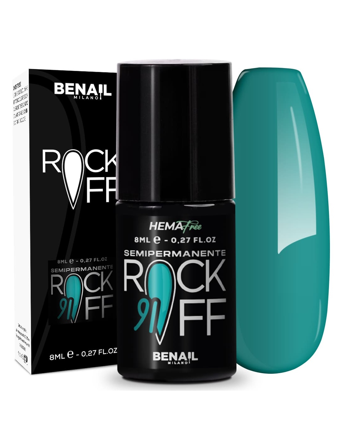 Rockoff è uno smalto semipermanente ad alta pigmentazione, studiato e realizzato con una particolare formulazione ad oligomero composto che ne facilita l'applicazione ed evita la formazione di striature. Il prodotto è autolivellante, elastico e presenta colori estremamente intensi e brillanti, con una facile stesura garantita dal pennellino a setole larghe in dotazione. Per un ottima efficacia del semipermanente si consiglia di utilizzare il Finish Extreme Color Match per colori fluo e pastello, che contiene Sun Blocker utile per la protezione dai raggi solari; per i colori bianchi si raccomanda il Finish Puro White.