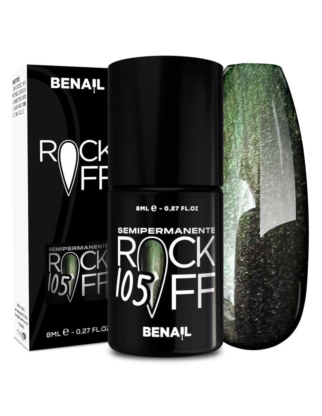 Rockoff è uno smalto semipermanente ad alta pigmentazione, studiato e realizzato con una particolare formulazione ad oligomero composto che ne facilita l'applicazione ed evita la formazione di striature. Il prodotto è autolivellante, elastico e presenta colori estremamente intensi e brillanti, con una facile stesura garantita dal pennellino a setole larghe in dotazione. Per un ottima efficacia del semipermanente si consiglia di utilizzare il Finish Extreme Color Match per colori fluo e pastello, che contiene Sun Blocker utile per la protezione dai raggi solari; per i colori bianchi si raccomanda il Finish Puro White.
