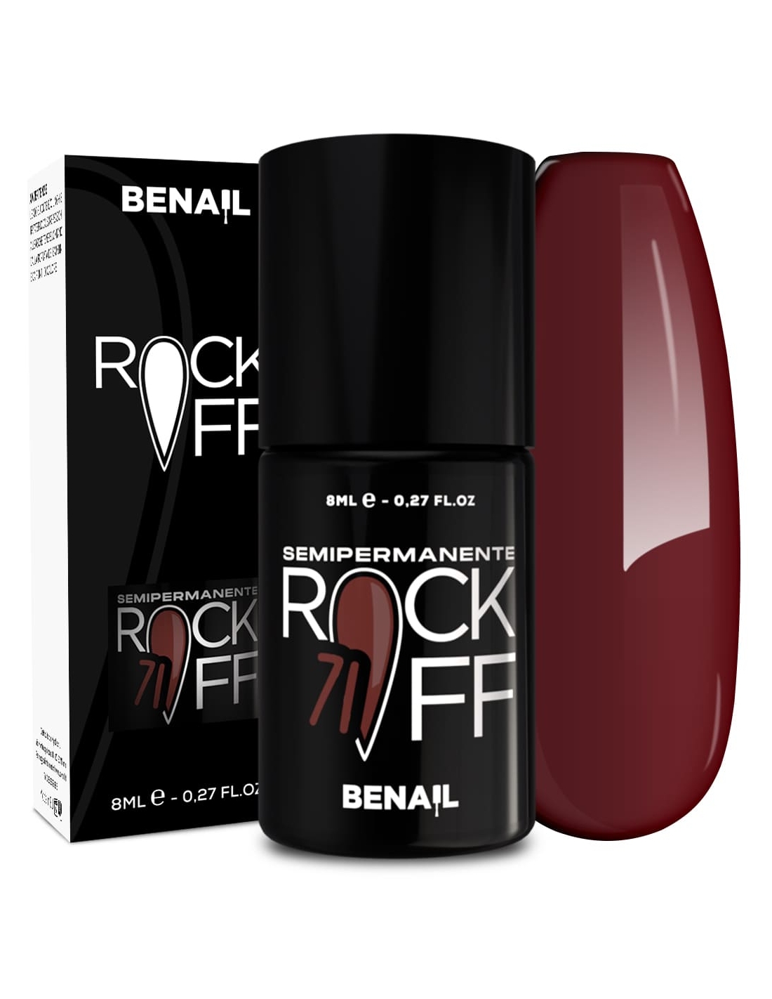 Rockoff è uno smalto semipermanente ad alta pigmentazione, studiato e realizzato con una particolare formulazione ad oligomero composto che ne facilita l'applicazione ed evita la formazione di striature. Il prodotto è autolivellante, elastico e presenta colori estremamente intensi e brillanti, con una facile stesura garantita dal pennellino a setole larghe in dotazione. Per un ottima efficacia del semipermanente si consiglia di utilizzare il Finish Extreme Color Match per colori fluo e pastello, che contiene Sun Blocker utile per la protezione dai raggi solari; per i colori bianchi si raccomanda il Finish Puro White.