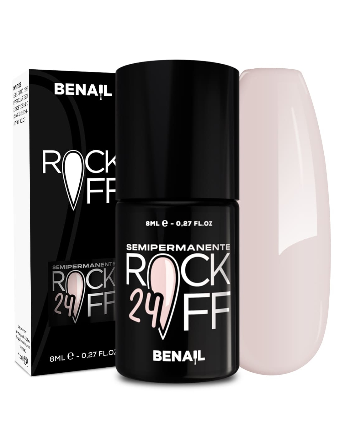Rockoff è uno smalto semipermanente ad alta pigmentazione, studiato e realizzato con una particolare formulazione ad oligomero composto che ne facilita l'applicazione ed evita la formazione di striature. Il prodotto è autolivellante, elastico e presenta colori estremamente intensi e brillanti, con una facile stesura garantita dal pennellino a setole larghe in dotazione. Per un ottima efficacia del semipermanente si consiglia di utilizzare il Finish Extreme Color Match per colori fluo e pastello, che contiene Sun Blocker utile per la protezione dai raggi solari; per i colori bianchi si raccomanda il Finish Puro White.