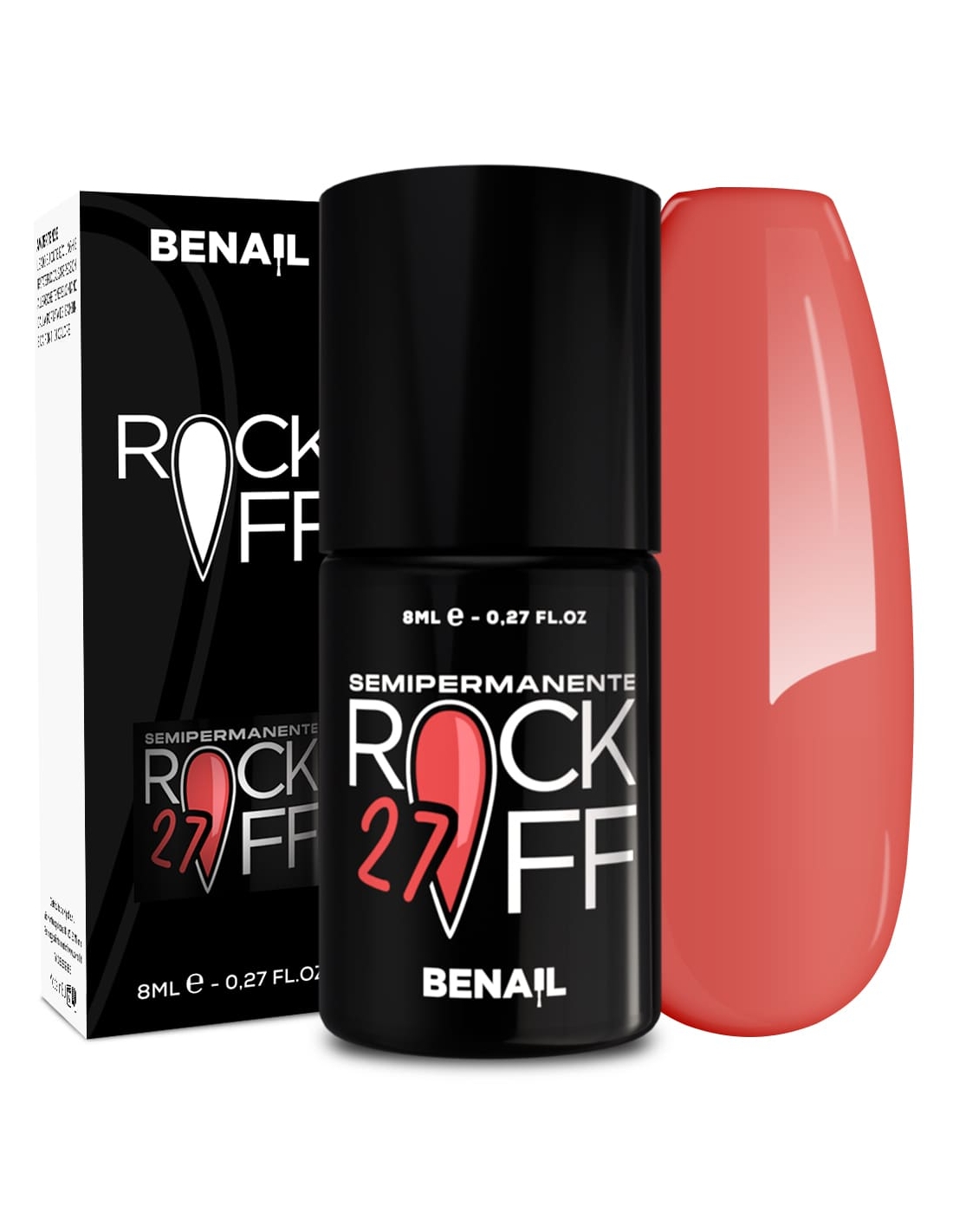 Rockoff è uno smalto semipermanente ad alta pigmentazione, studiato e realizzato con una particolare formulazione ad oligomero composto che ne facilita l'applicazione ed evita la formazione di striature. Il prodotto è autolivellante, elastico e presenta colori estremamente intensi e brillanti, con una facile stesura garantita dal pennellino a setole larghe in dotazione. Per un ottima efficacia del semipermanente si consiglia di utilizzare il Finish Extreme Color Match per colori fluo e pastello, che contiene Sun Blocker utile per la protezione dai raggi solari; per i colori bianchi si raccomanda il Finish Puro White.