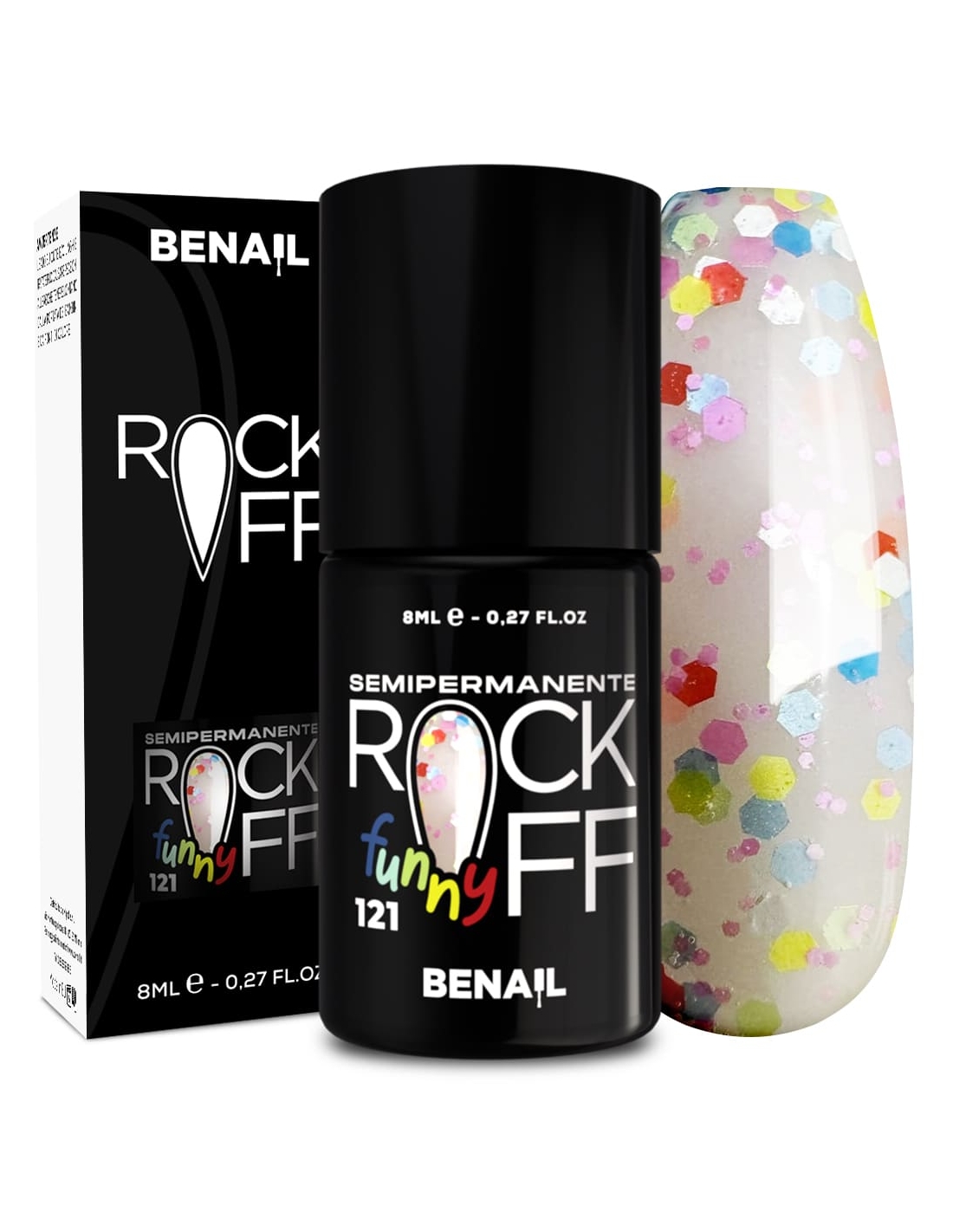 Rockoff è uno smalto semipermanente ad alta pigmentazione, studiato e realizzato con una particolare formulazione ad oligomero composto che ne facilita l'applicazione ed evita la formazione di striature. Il prodotto è autolivellante, elastico e presenta colori estremamente intensi e brillanti, con una facile stesura garantita dal pennellino a setole larghe in dotazione. Per un ottima efficacia del semipermanente si consiglia di utilizzare il Finish Extreme Color Match per colori fluo e pastello, che contiene Sun Blocker utile per la protezione dai raggi solari; per i colori bianchi si raccomanda il Finish Puro White.
