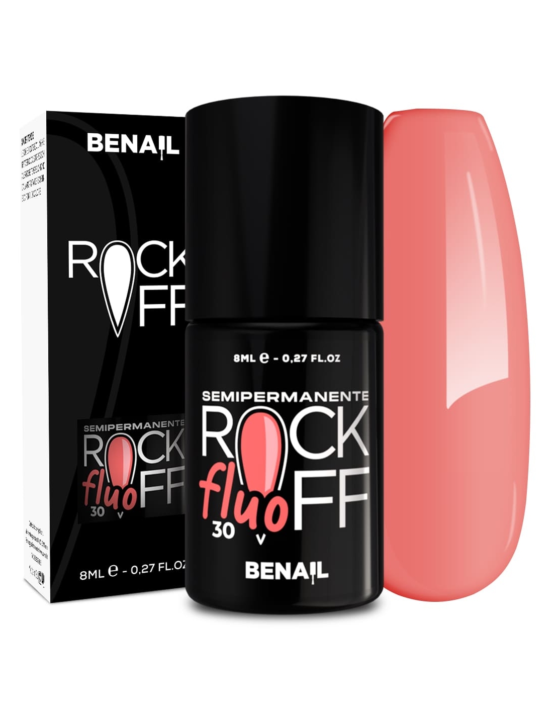 Rockoff è uno smalto semipermanente ad alta pigmentazione, studiato e realizzato con una particolare formulazione ad oligomero composto che ne facilita l'applicazione ed evita la formazione di striature. Il prodotto è autolivellante, elastico e presenta colori estremamente intensi e brillanti, con una facile stesura garantita dal pennellino a setole larghe in dotazione. Per un ottima efficacia del semipermanente si consiglia di utilizzare il Finish Extreme Color Match per colori fluo e pastello, che contiene Sun Blocker utile per la protezione dai raggi solari; per i colori bianchi si raccomanda il Finish Puro White.