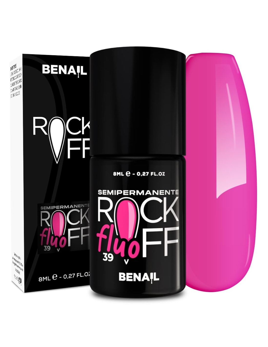 Rockoff è uno smalto semipermanente ad alta pigmentazione, studiato e realizzato con una particolare formulazione ad oligomero composto che ne facilita l'applicazione ed evita la formazione di striature. Il prodotto è autolivellante, elastico e presenta colori estremamente intensi e brillanti, con una facile stesura garantita dal pennellino a setole larghe in dotazione. Per un ottima efficacia del semipermanente si consiglia di utilizzare il Finish Extreme Color Match per colori fluo e pastello, che contiene Sun Blocker utile per la protezione dai raggi solari; per i colori bianchi si raccomanda il Finish Puro White.