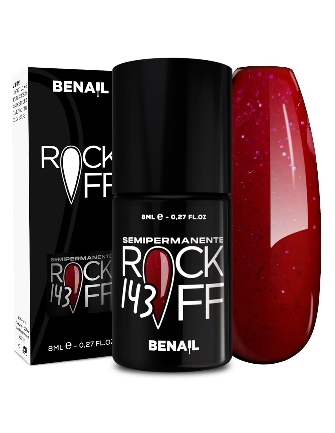 Rockoff è uno smalto semipermanente ad alta pigmentazione, studiato e realizzato con una particolare formulazione ad oligomero composto che ne facilita l'applicazione ed evita la formazione di striature. Il prodotto è autolivellante, elastico e presenta colori estremamente intensi e brillanti, con una facile stesura garantita dal pennellino a setole larghe in dotazione. Per un ottima efficacia del semipermanente si consiglia di utilizzare il Finish Extreme Color Match per colori fluo e pastello, che contiene Sun Blocker utile per la protezione dai raggi solari; per i colori bianchi si raccomanda il Finish Puro White.