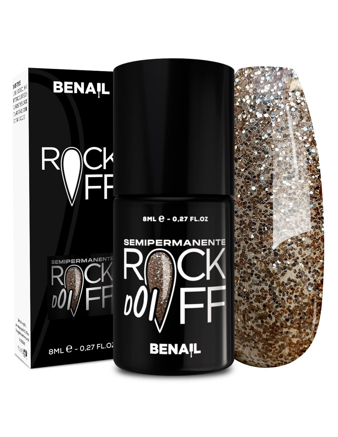 Rockoff è uno smalto semipermanente ad alta pigmentazione, studiato e realizzato con una particolare formulazione ad oligomero composto che ne facilita l'applicazione ed evita la formazione di striature. Il prodotto è autolivellante, elastico e presenta colori estremamente intensi e brillanti, con una facile stesura garantita dal pennellino a setole larghe in dotazione. Per un ottima efficacia del semipermanente si consiglia di utilizzare il Finish Extreme Color Match per colori fluo e pastello, che contiene Sun Blocker utile per la protezione dai raggi solari; per i colori bianchi si raccomanda il Finish Puro White.