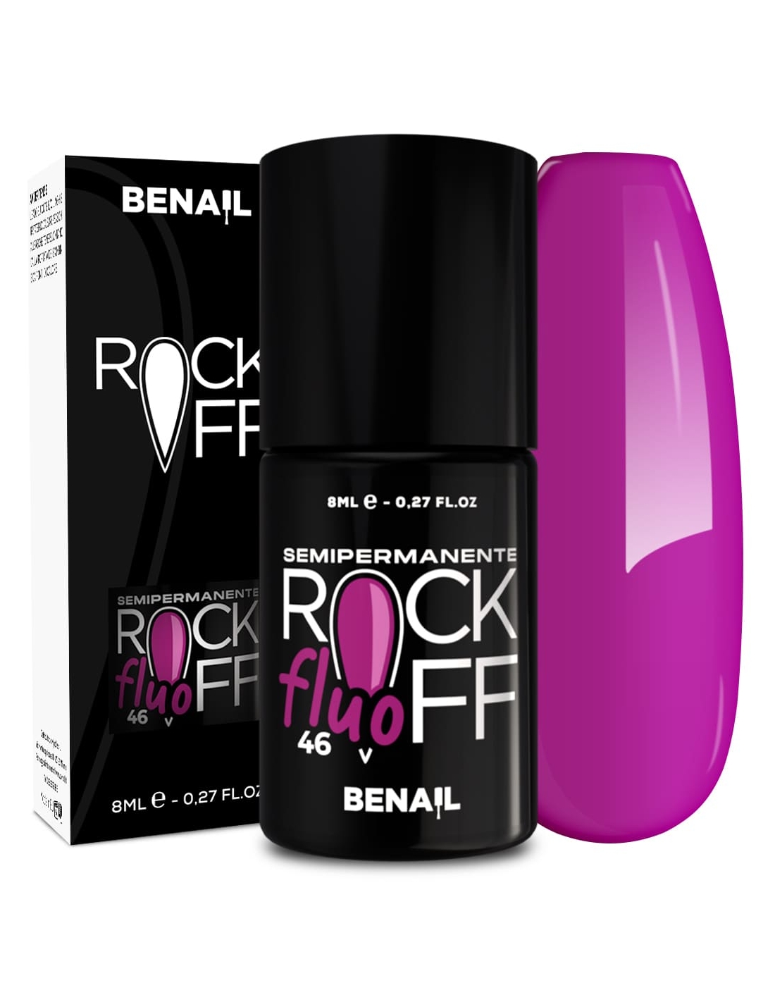 Rockoff è uno smalto semipermanente ad alta pigmentazione, studiato e realizzato con una particolare formulazione ad oligomero composto che ne facilita l'applicazione ed evita la formazione di striature. Il prodotto è autolivellante, elastico e presenta colori estremamente intensi e brillanti, con una facile stesura garantita dal pennellino a setole larghe in dotazione. Per un ottima efficacia del semipermanente si consiglia di utilizzare il Finish Extreme Color Match per colori fluo e pastello, che contiene Sun Blocker utile per la protezione dai raggi solari; per i colori bianchi si raccomanda il Finish Puro White.