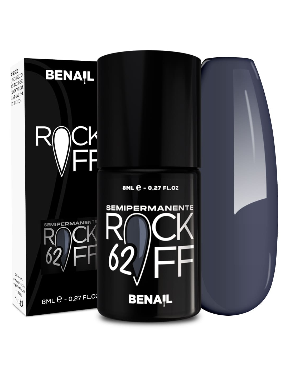 Rockoff è uno smalto semipermanente ad alta pigmentazione, studiato e realizzato con una particolare formulazione ad oligomero composto che ne facilita l'applicazione ed evita la formazione di striature. Il prodotto è autolivellante, elastico e presenta colori estremamente intensi e brillanti, con una facile stesura garantita dal pennellino a setole larghe in dotazione. Per un ottima efficacia del semipermanente si consiglia di utilizzare il Finish Extreme Color Match per colori fluo e pastello, che contiene Sun Blocker utile per la protezione dai raggi solari; per i colori bianchi si raccomanda il Finish Puro White.