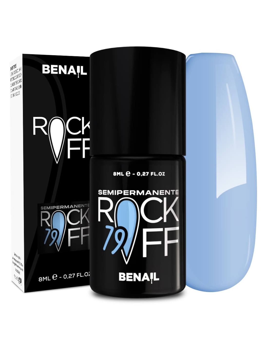 Rockoff è uno smalto semipermanente ad alta pigmentazione, studiato e realizzato con una particolare formulazione ad oligomero composto che ne facilita l'applicazione ed evita la formazione di striature. Il prodotto è autolivellante, elastico e presenta colori estremamente intensi e brillanti, con una facile stesura garantita dal pennellino a setole larghe in dotazione. Per un ottima efficacia del semipermanente si consiglia di utilizzare il Finish Extreme Color Match per colori fluo e pastello, che contiene Sun Blocker utile per la protezione dai raggi solari; per i colori bianchi si raccomanda il Finish Puro White.