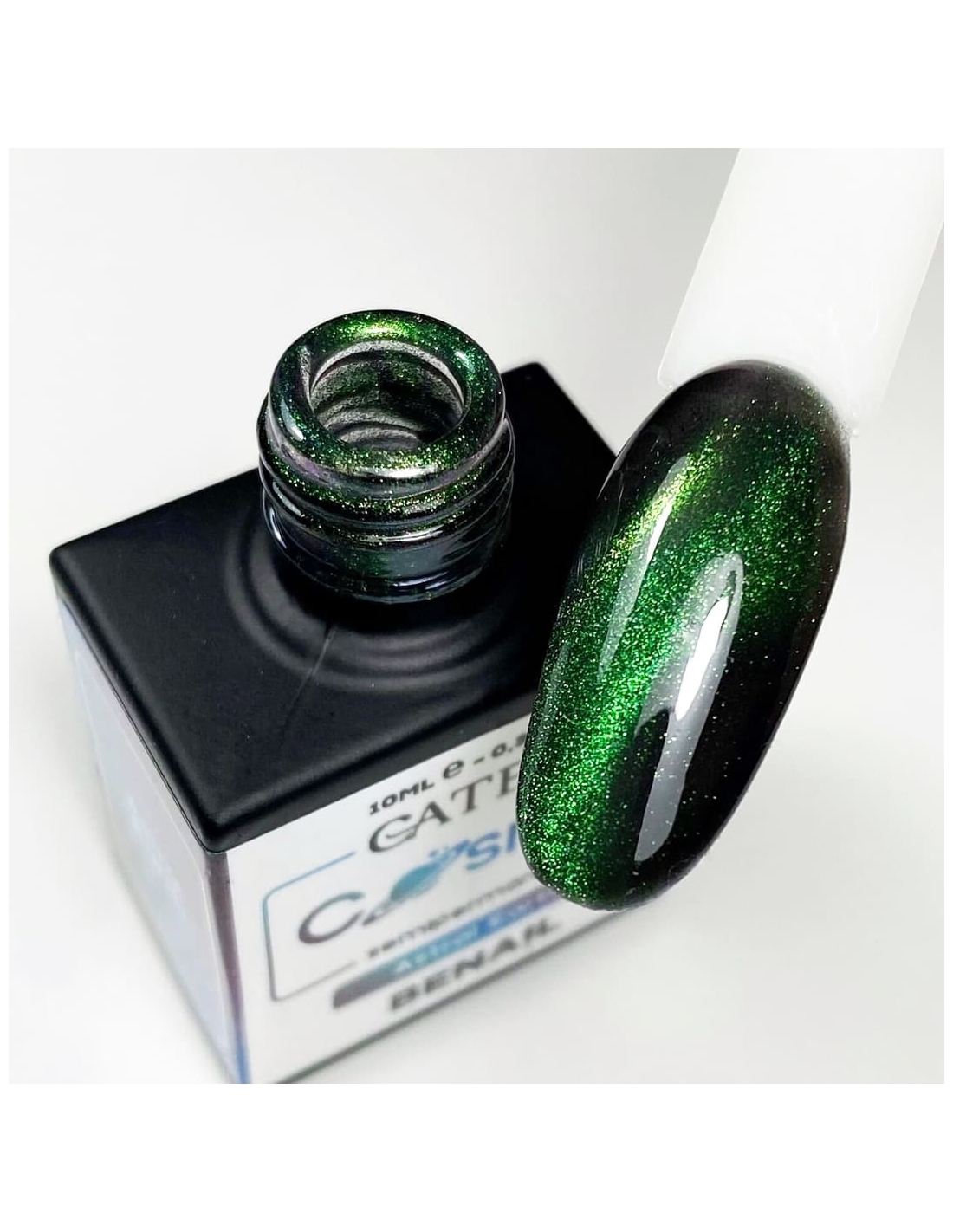 È ideale sia per applicazioni full color sia per valorizzare nail art e dettagli particolari. Per ottenere l’effetto magnetico è necessario utilizzare una calamita specifica per smalti Cat Eyes, che permette di orientare le particelle metalliche e realizzare un look 3D unico e luminoso