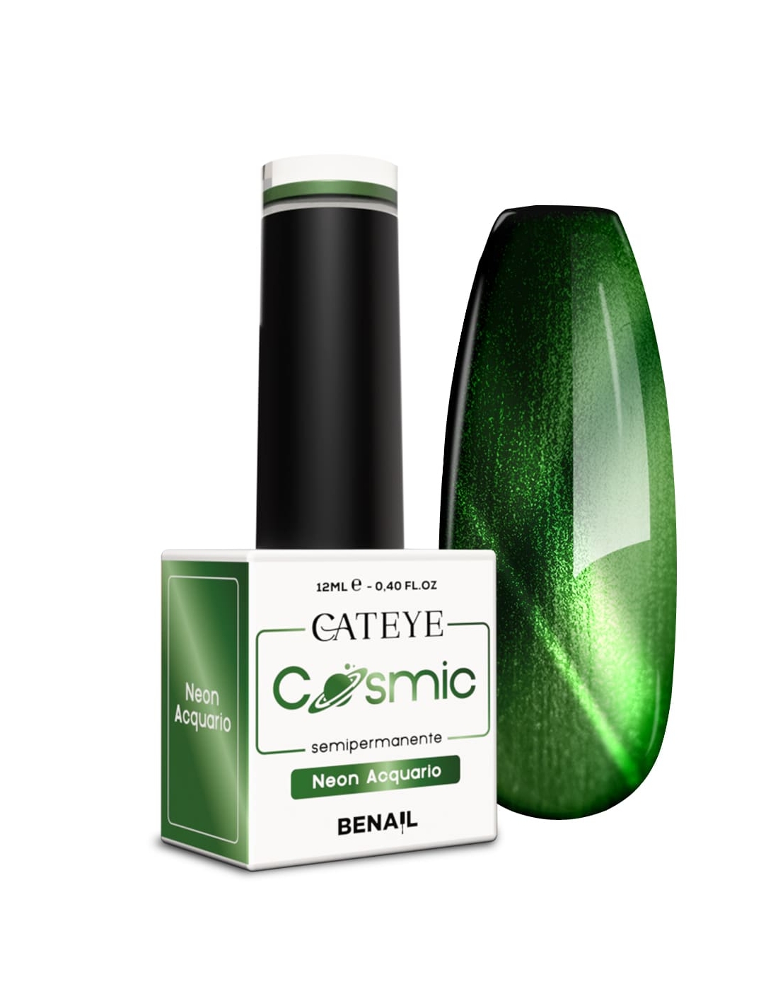 Lo Smalto Semipermanente Cat Eyes – Neon Acquario è la scelta perfetta per chi desidera un effetto magnetico tridimensionale, brillante e profondo. La sua formula altamente pigmentata permette di ottenere una coprenza impeccabile sin dalla prima stesura, garantendo un risultato intenso e duraturo fino a 4 settimane. Grazie alla tecnologia “cat’s eyes”, potrai creare sfumature magnetiche personalizzate, giochi di luce sofisticati e un finish 3D che cattura lo sguardo. È ideale sia per applicazioni full color sia per valorizzare nail art e dettagli particolari. Per ottenere l’effetto magnetico è necessario utilizzare una calamita specifica per smalti Cat Eyes, che permette di orientare le particelle metalliche e realizzare un look 3D unico e luminoso.